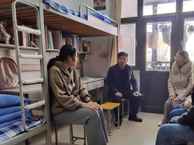 副院长谷现海深入商务外语系学生宿舍,与同学们进行亲切交谈,详细询问了同学们在假期的学习、生活情况,以及对新学期的生活安排、考试复习情况和学业规划。对于同学们提出的在大学生活中遇到的困惑,他结合自身成长经历,殷切叮嘱同学们在大学里要做好学业规划、职业规划和人生规划,要多与家人沟通交流,多与辅导员和老师们交流,遇到任何困难及时向学院反馈,学院也将尽最大努力满足同学们的要求。