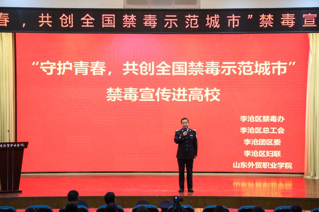 3月9日下午,李沧区禁毒办、区团委、区总工会、区妇联和学院联合开展的“守护青春 共建全国禁毒示范城市”暨禁毒宣传进高校活动在伟德李沧校区举办,李沧公安分局禁毒大队副大队长宁军,虎山路派出所副所长王治国,李沧区妇联二级调研员隋红,学院党委副书记黄维,学生工作处处长孙巧奎以及各系师生代表400余人参加活动。