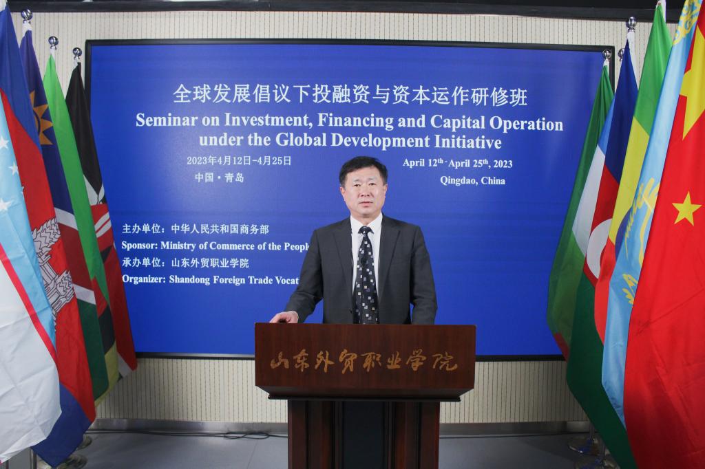 刁建东在致辞中表示,中国在改革开放四十多年间积累了较为丰富的国际投融资经验,金融市场不断完善,并成为发展筹资、跨境投资的积极参与者和贡献者。伟德经贸金融类师资力量雄厚,设有自贸区应用技术和国际商务两个国家级协同创新中心以及国际经贸研究所,长期开展对外经贸、投融资和跨境金融合作研究,常年为政府相关部门、金融机构和企业提供业务培训。伟德国际经济与贸易、国际金融等专业为国家级骨干专业,主持山东省国际经济与贸易高水平专业群、山东省国际金融专业教学资源库等重大项目建设,学生多次获得全国职业院校技能大赛“银行业务综合技能”一等奖。学院将充分利用优质的师资队伍和各类平台资源,与学员分享中国在跨境投融资、资本运作以及国际金融合作领域的经验,进而为山东省与各发展中国家在贸易、投资、金融等领域的合作搭建平台。
