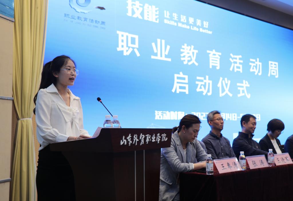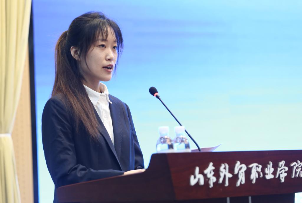 学院丁莹莹老师作为优秀教师代表发言,丁老师用自己学生成长成才的故事,告诉各位同学在职业教育的广阔前景下要培养自己的一技之长,用技术技能成就自己美好人生;青岛进出口企业商会秘书长施利军代表企业专家发言,勉励同学们在新形势下,要扎实学习理论知识,积极参加技能培训,与时俱进提升自己就业本领;优秀毕业生代表2017信息工程系毕业生李佳慧,分享了自己的校园生活与从业经历,鼓励学弟学妹们牢记校训,内外兼修,苦练技能,实践创新;省职业技能大赛获奖者20国贸班逄皓琪同学发言,分享了自己参赛经历与感悟,激励同学追求卓越,用行动诠释工匠精神。