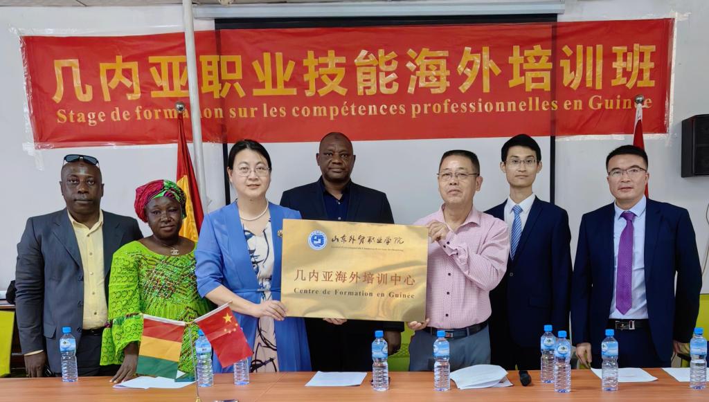 开班仪式上,刘珉和陈仁兵为伟德几内亚培训中心揭牌。该中心是伟德自2015年以来建立的第13个海外培训中心,将为促进我省与几内亚开展教育和经贸合作发挥积极作用。