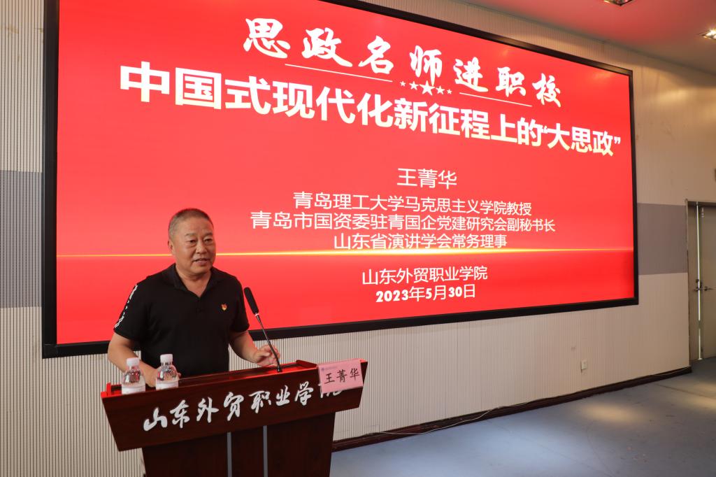 在学习贯彻习近平新时代中国特色社会主义思想主题教育深入开展之际,5月30日下午,由青岛市中华职教社组织开展的“思政名师进职校”活动走进伟德。青岛市思政名师、青岛理工大学教授王菁华为全体思政课教师和辅导员作了“中国式现代化新征程上的‘大思政’”主题报告。