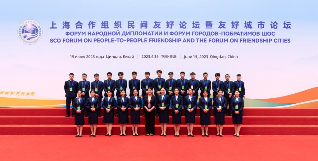 在上海合作组织青岛峰会举办5周年之际,6月14日至16日,以“弘扬‘上海精神’推动友好合作”为主题的上海合作组织民间友好论坛暨友好城市论坛在青岛举办。本次论坛有来自上合组织有关国家政要、驻华使节,州、市长等20余位部级及以上重要外宾和嘉宾在内的400名代表参加。此次论坛学院共选派110位志愿者参加欢迎晚宴及开幕式的各项服务保障工作。