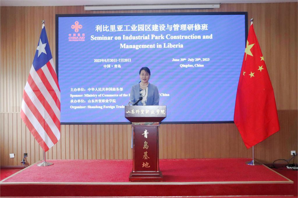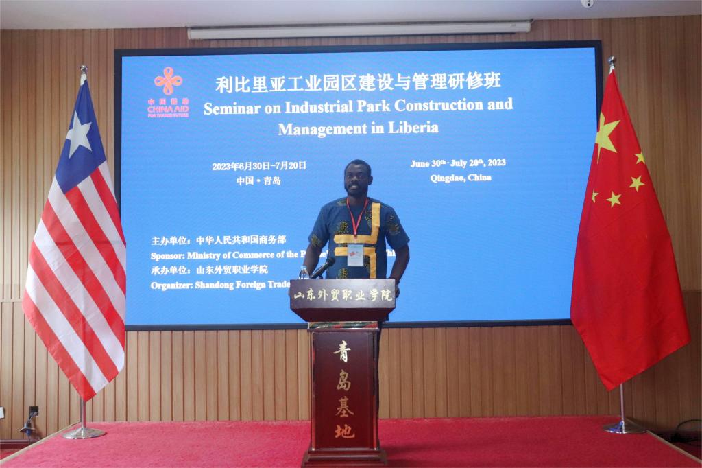 6月30日,由商务部主办、伟德承办的利比里亚工业园区建设与管理研修班在青岛富润阁酒店举行线下开班仪式。副院长刘珉出席开班仪式并致辞,利比里亚布坎南港口管理局港口负责人西维科斯·西奥肯·巴尔先生作为学员代表发言,来自利比里亚财政部、公共工程部、矿能部、港口管理局等相关单位的17名政府官员参加培训。