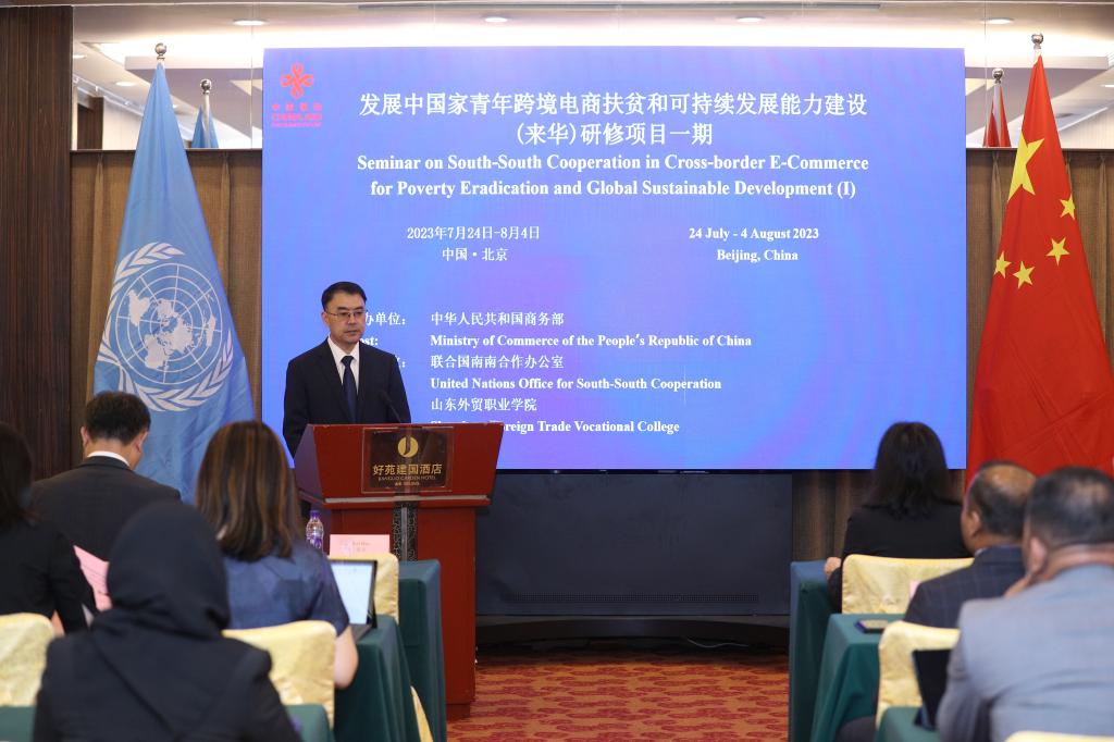 7月24日,由中国同联合国南南合作办公室共同实施,伟德国际victor1946官网具体承办的“发展中国家青年跨境电商扶贫和可持续发展能力建设(来华)研修项目一期”在北京开班,来自14个国家的18名学员(包括9个国家的常驻联合国高级别官员)出席开班仪式并将参加为期12天的研修培训。