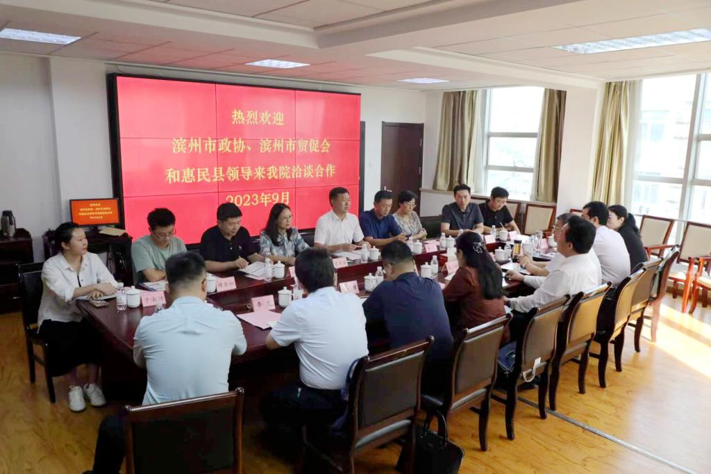 洽谈会上,皮台田表示他们此次是慕名而来,同时,也对学院长久以来给予滨州的支持和帮助表示衷心的感谢。皮台田、杨君华、杨宝亮等分别介绍了滨州市、滨州贸促会以及惠民县网绳产业的情况和发展面临的困境。他们希望能与学院深化合作、深度合作,为惠民县破解难题,帮助绳网产业培育外贸人才,并助力惠民县发展培育电商产业。刁建东介绍了学院的基本情况和对滨州市及惠民县绳网产业的了解情况,他针对惠民县绳网产业发展现状和面临的困境,从培训基地建设、实习基地建设、订单班培养、短期外贸转型升级培训、跨境电商孵化式培训、产业学院建设、合作企业引进、技术服务等方面提出11条建议,为双方达成深度合作意向指明了具体方向。