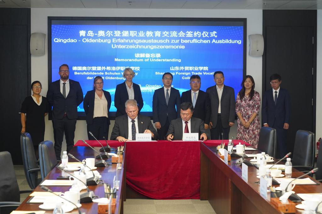 9月13日青岛市外办、教育局邀请伟德参加青岛-奥尔登堡友城职业教育交流会,刁建东出席并致辞,与会期间与外希洛伊职业学校签订合作备忘录。