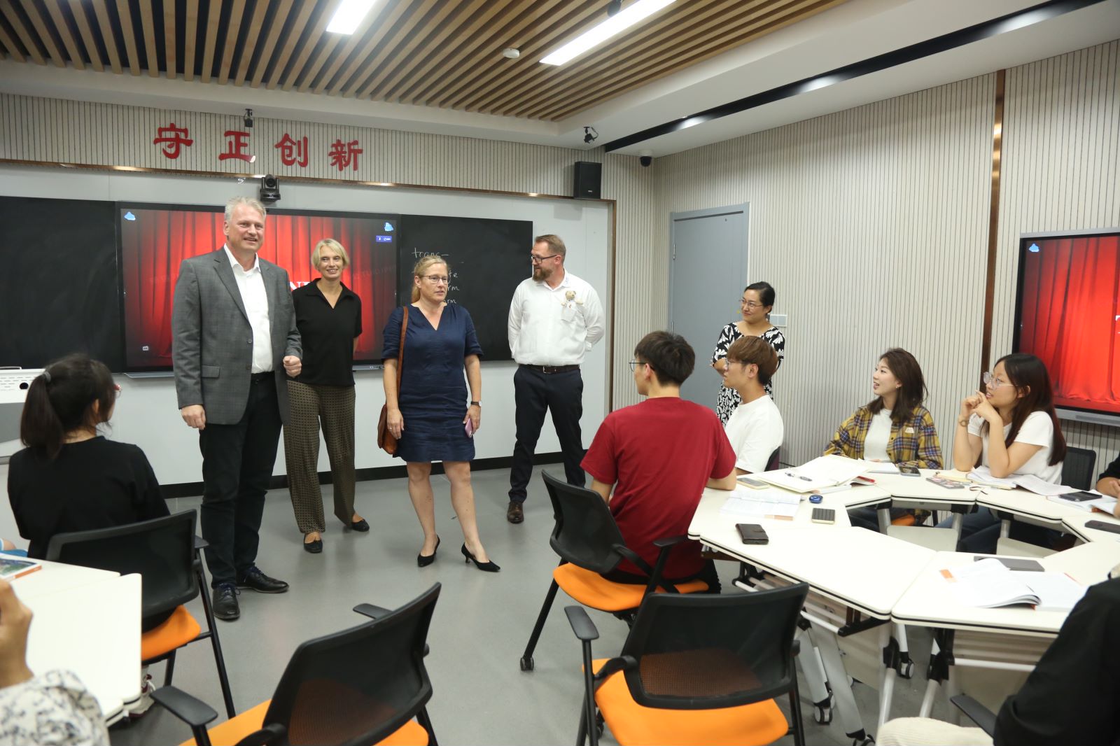 9月15日,德国奥尔登堡市外希洛伊职业学校校长奥利弗·彭特、奥尔登堡市市长办公室礼宾与国际合作部中国事务办公室主任王昱一行来伟德交流访问。院长刁建东,国际交流合作处、公共英语部、国际贸易系等相关部门负责人陪同接待。