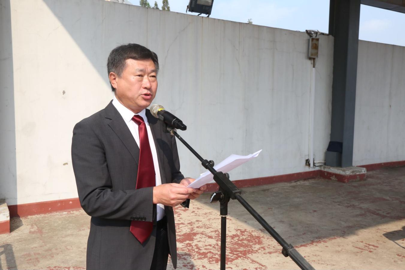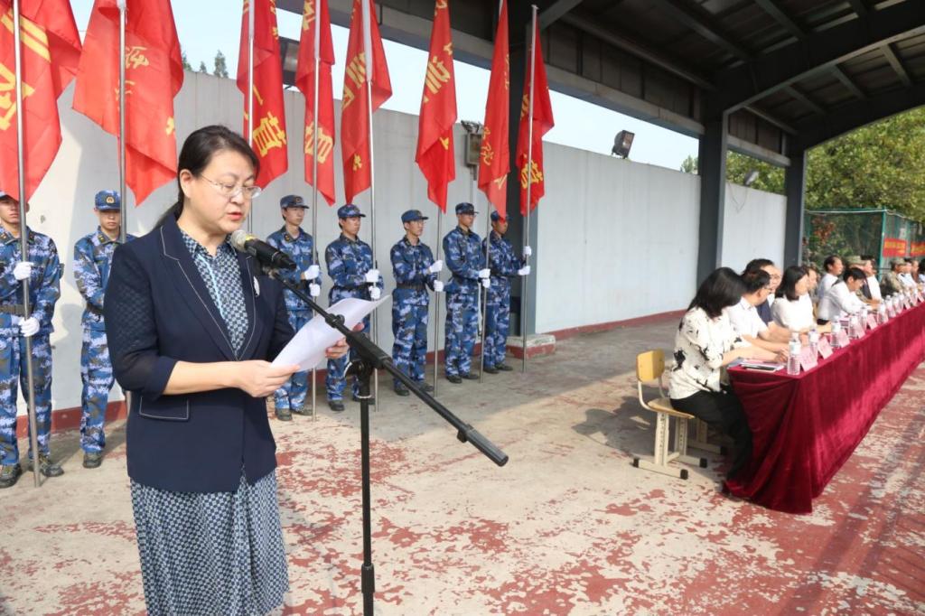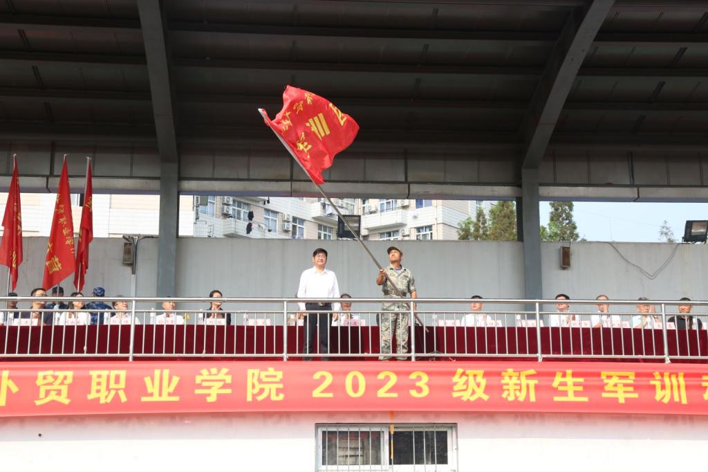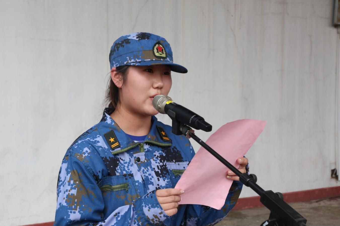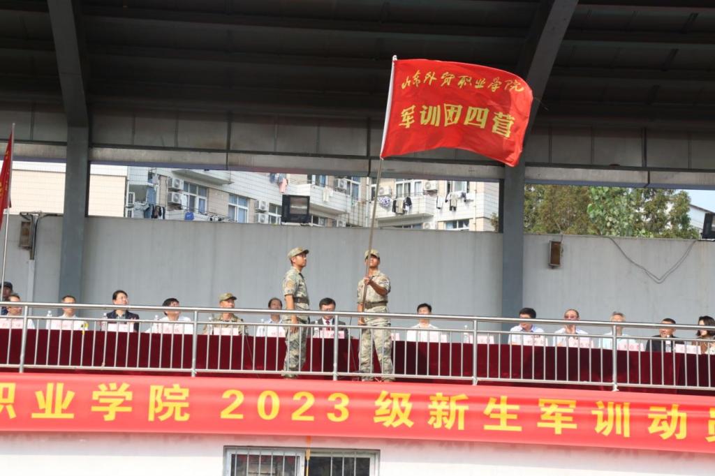大会在庄严的国歌声中拉开帷幕。刘珉宣布军训团组织建制,高成向军训团团长授旗,军训团团长向各营营长授旗。授旗仪式结束后,新生代表2023级旅游管理1班刘桂雨同学进行了发言。