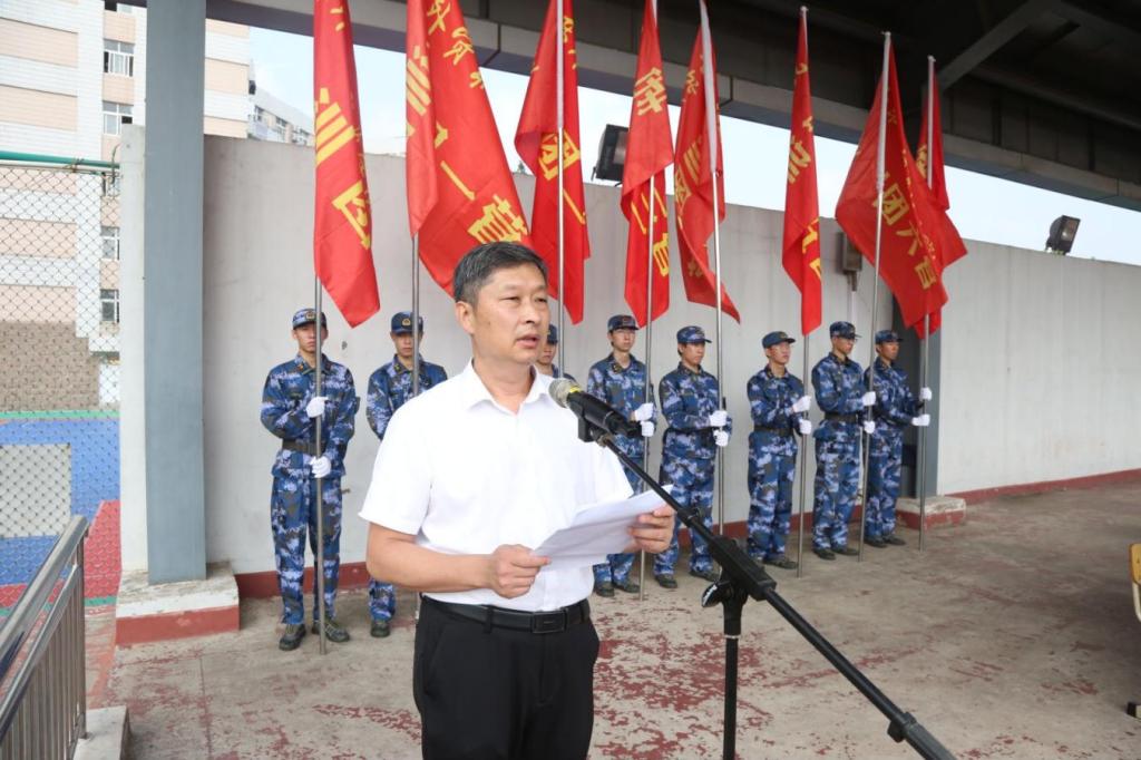 刁建东作军训动员讲话,他首先向热情关心和鼎力支持伟德新生军训工作的承训部队表示了诚挚感谢,向加入学院大家庭的2023级新同学表示了热烈欢迎,并提了几点希望:一是希望同学们端正态度,以饱满的热情全身心地投入到训练中;二是希望教官们高标准、严要求,精心指导、严格施训;三是希望同学们以军训为起点,不畏挑战,不负青春,勇于奋斗。
