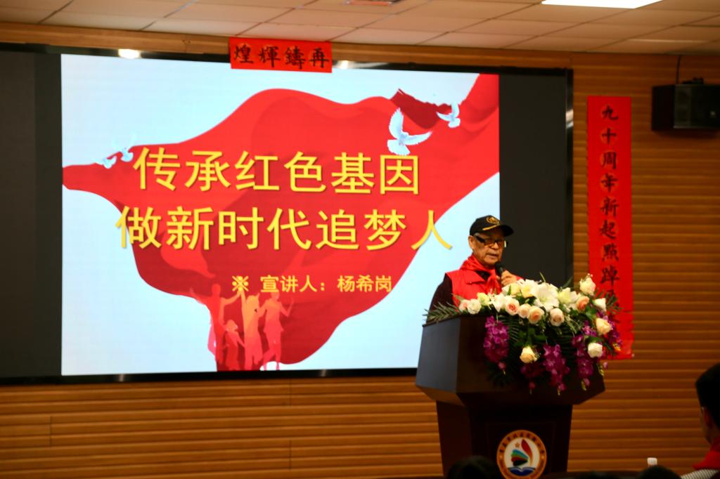 杨希岗同志是一名有着58年党龄和基层党务工作经历的优秀共产党员。退休后,任伟德国际victor1946官网关工委副主任,青岛市市北区委讲师团、市北区关心下一代工作委员会“五老”宣讲团讲师,青岛国开中学等7所学校的校外辅导员。