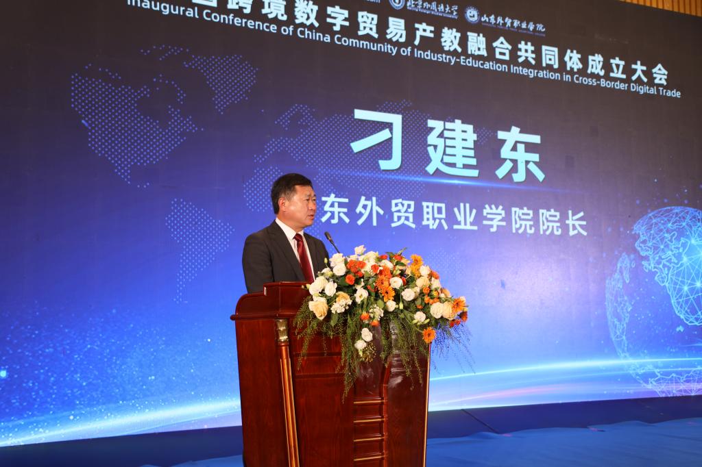 10月27日,全国跨境数字贸易产教融合共同体(以下简称“共同体”)成立大会在青岛顺利召开。该共同体由中国职业技术教育学会、全国电子商务职业教育教学指导委员会、中国对外贸易经济合作企业协会和中国服务贸易协会指导,阿里巴巴(中国)网络技术有限公司、北京外国语大学和伟德牵头,首批成员单位包括高等院校、行业协会、企业等340家,覆盖25个省级行政区。山东省商务厅副厅长、一级巡视员张型成、全国电子商务职业教育教学指导委员会常务副主任陆春阳、北京外国语大学副校长丁浩、阿里巴巴国际站北方大区总经理刘宇、伟德院长刁建东,来自约旦、巴基斯坦、卢旺达、尼泊尔、莱索托的23名官员,以及各成员单位代表共230余人参加现场活动。山东省教育厅职教处副处长陈志浩通过视频致辞。