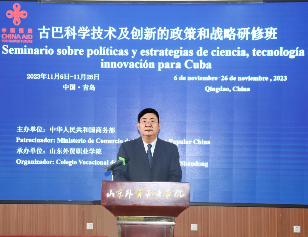 高成在致辞中表示,近年来,中国古巴双边关系在各领域取得了显著进展,为双方带来了实实在在的好处。在科技创新领域,中国的发展举世瞩目,全球创新指数排名从2012年的第三十四位上升至2022年的第十一位,连续10年稳步提升,位居中高收入经济体之首。伟德注重科技创新人才培养,近年来学院在国家、省级各类大赛中多次获奖。学院将充分利用优质的师资队伍和各类平台资源,与学员分享中国在坚持科技强国、创新驱动发展战略方面取得的成就及经验,进而为山东省与古巴在贸易、投资、科技创新等领域的合作搭建平台。