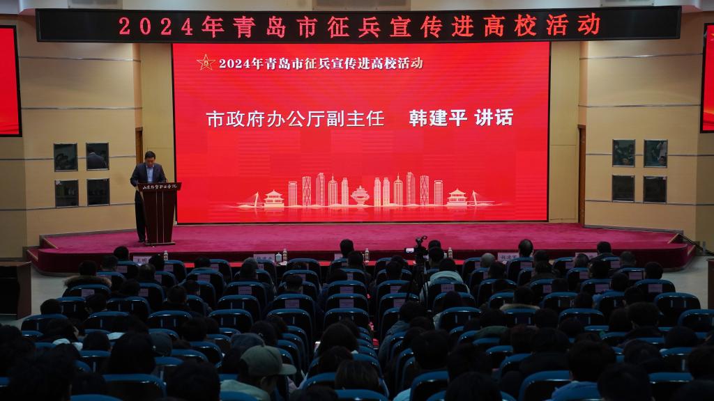 市政府办公厅副主任韩建平就做好征兵工作讲了三点意见,一是要认清形势,主动扛起征兵宣传使命担当,二是要聚焦重点,不断提升征兵宣传工作成效,三是要做好保障,积极鼓励携笔从戎报效祖国。他希望广大同学积极响应祖国号召,携笔从戎固国防,报效祖国立新功,充分展现当代有志青年的责任与担当。
