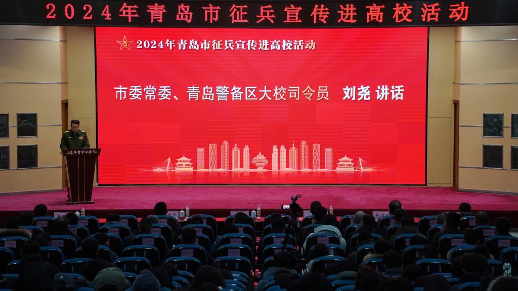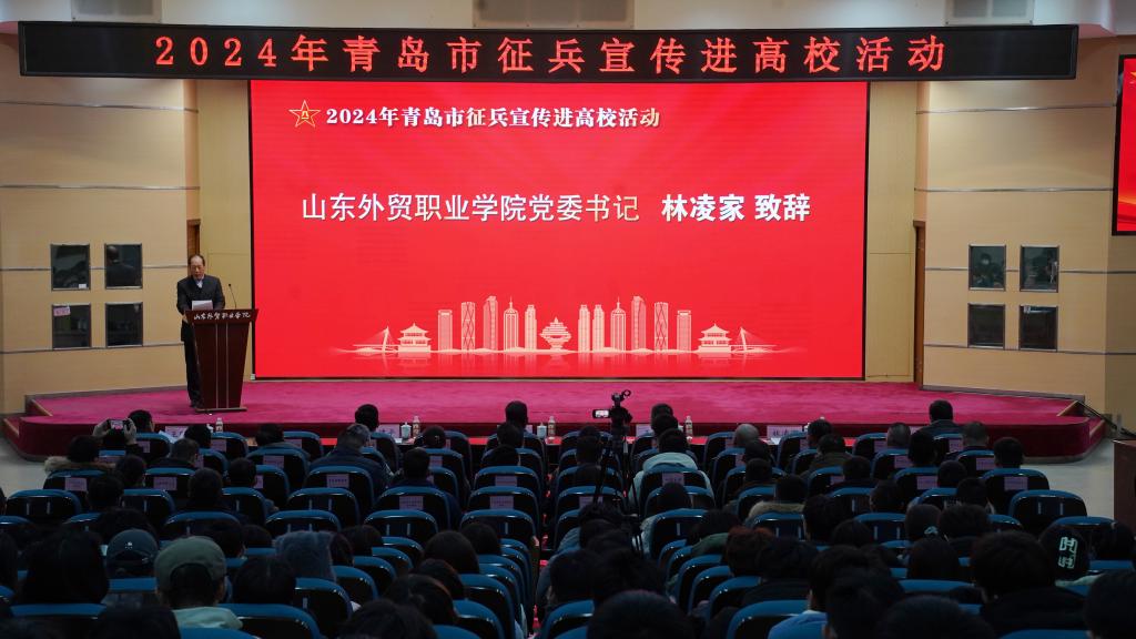 为深入学习贯彻党的二十大精神和习近平强军思想,不断强化我校学生国防观念和国家安全意识,进一步宣传国家大学生征兵入伍政策,激发大学生参军入伍热情,鼓励和引导在校大学生,特别是优秀毕业生应征入伍,12月21日下午,2024年青岛市征兵宣传进高校活动在伟德隆重举行。本次活动由青岛市人民政府、青岛警备区主办,李沧区人民政府征兵办公室和伟德协办。青岛市委常委、警备区大校司令员刘尧、市政府办公厅副主任韩建平、青岛警备区动员处上校处长王兵、学院党委书记林凌家、党委副书记黄维,青岛市各区、市人武部以及25所驻青高校征兵工作站负责人出席活动,伟德300余名师生共同参加活动。