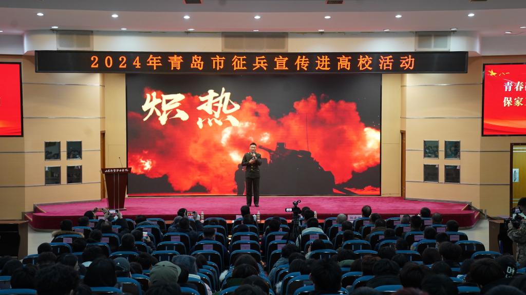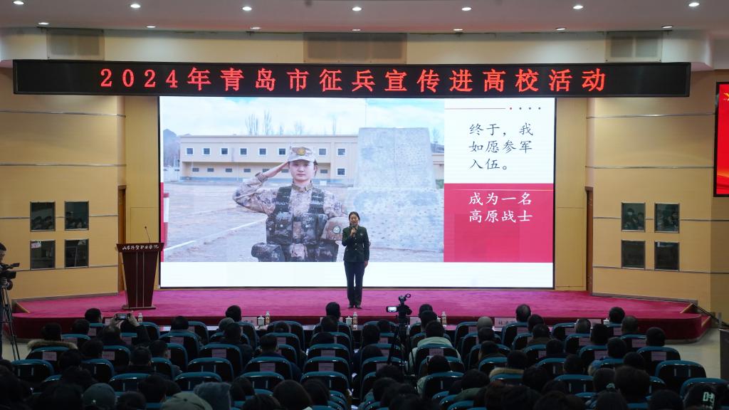 来自青岛理工大学、青岛电影学院的三名优秀退役大学生做“爱国国防”宣讲,他们分别深情分享自己从军路上追逐梦想、圆梦军营的故事,号召同学们扛起肩上的责任,投身强军兴军伟业,在军营这个大熔炉里淬炼成钢。活动期间还播放了“最美青岛兵”典型事迹视频,让广大同学从他们身上看到了当代革命军人的忠诚担当。