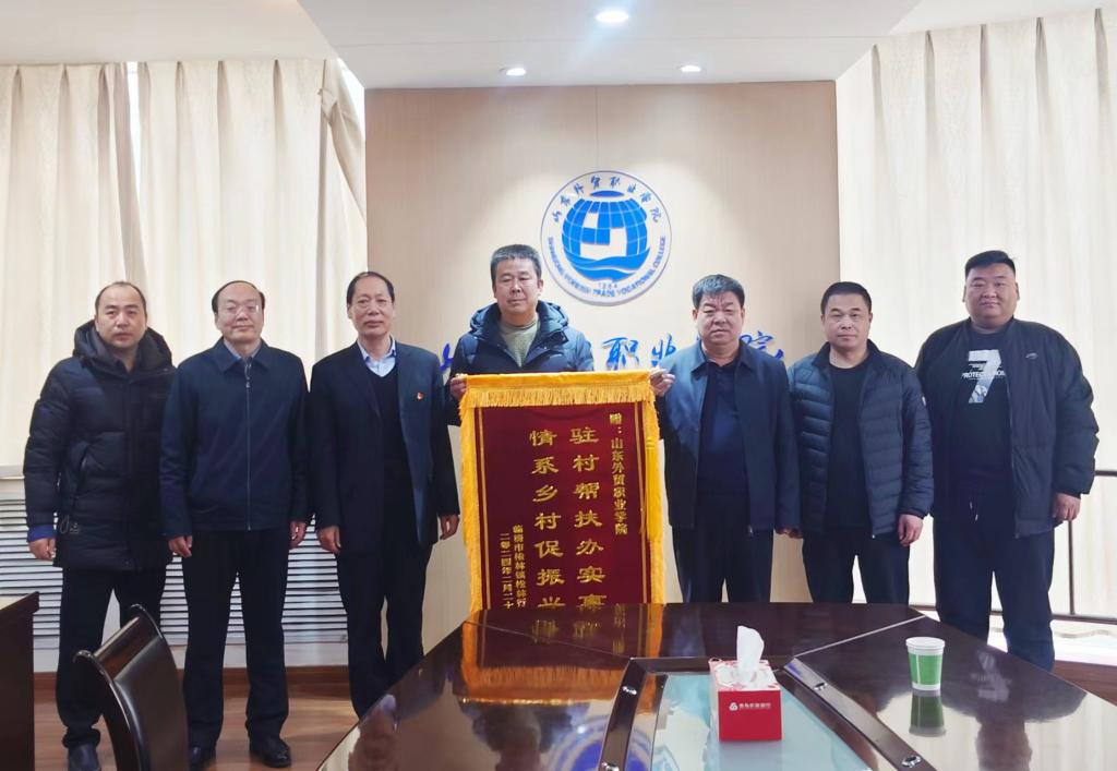林凌家对来宾表示欢迎,介绍了近几年学院利用专业和资源优势服务乡村振兴工作开展情况。任广禄代表村委向学院赠送锦旗,感谢学院派驻第一书记为乡村振兴作出的贡献和学院为支持乡村振兴和文化事业发展所做的捐赠,并详细介绍了姜军升同志派驻期间在带领村民创业致富、提升农村生活环境等方面所作的努力和带来的美好变化,以及广大村民对其工作认可和感谢之情。双方表示今后将加强交流,共同促进创新项目的高质量发展,并就乡镇企业发展、电商及培训、产业项目帮扶等方面进行深入交流和探讨。