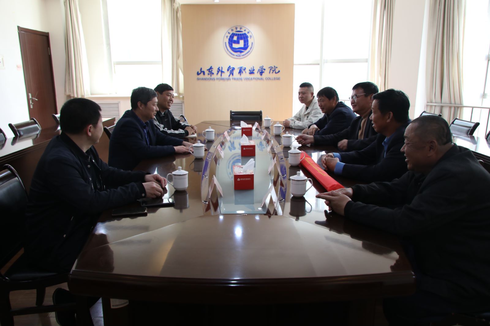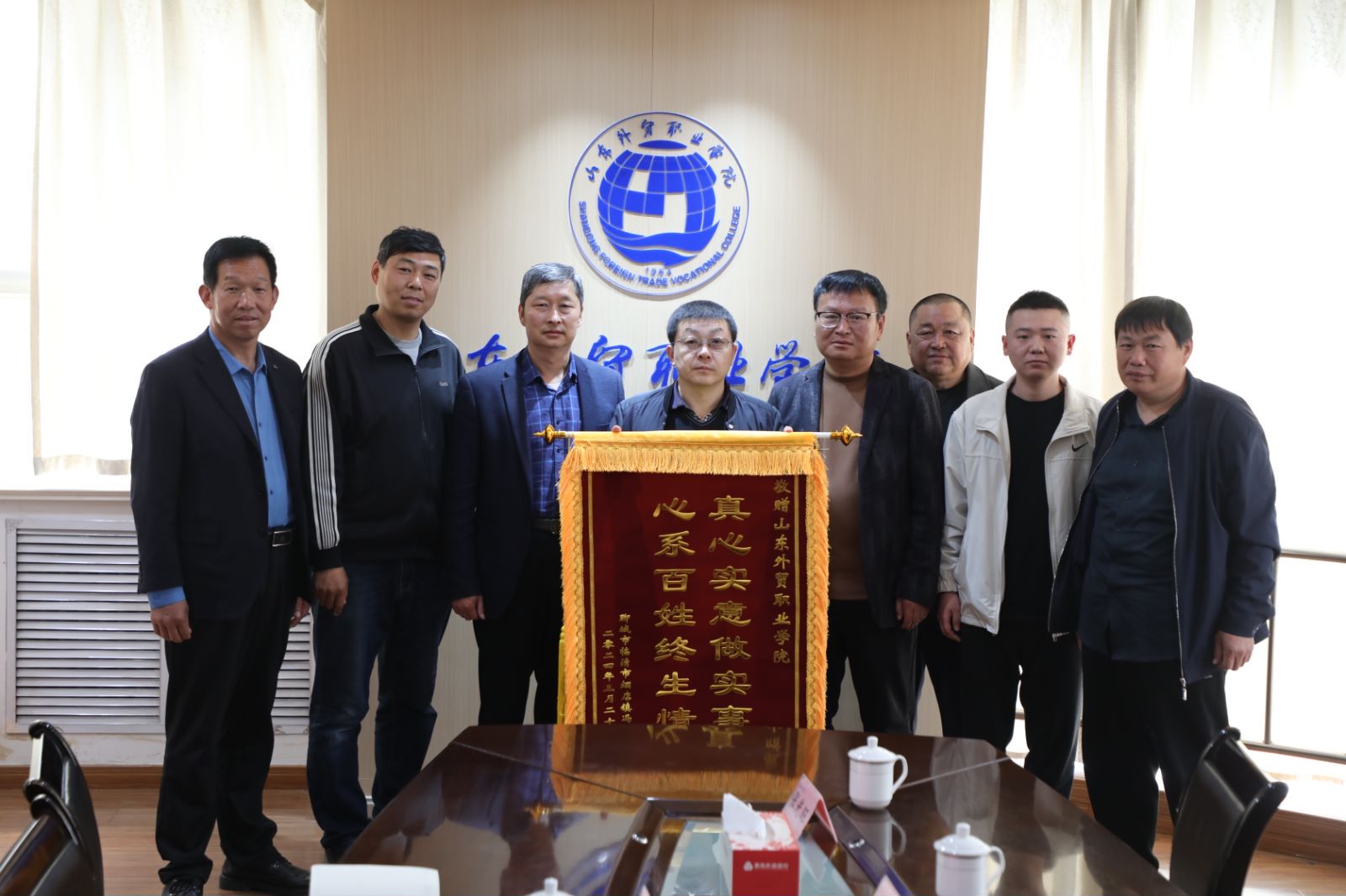 4月9日,临清市烟店镇冯圈村党支部书记冯连增、党支部副书记冯元华一行五人来学院看望之前驻村的第一书记并赠送锦旗。党委副书记黄维与来宾座谈,学院派驻冯圈村第一书记傅健、刘金松参加了座谈。