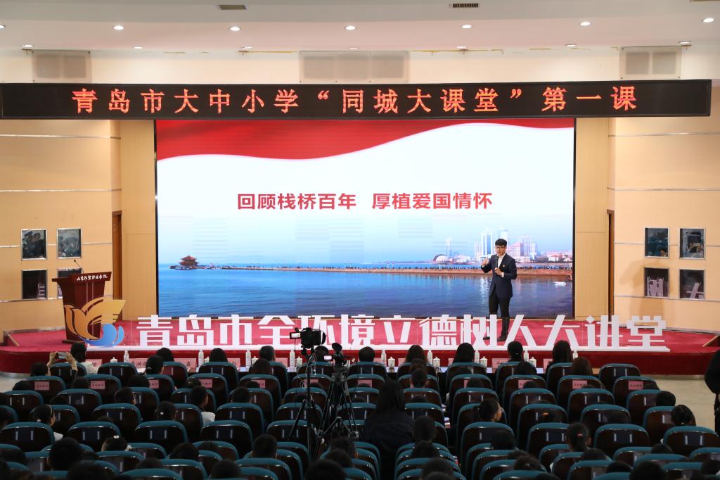 4月26日,青岛市大中小学“同城大课堂”第一课在伟德正式开讲。伟德马克思主义学院院长季洪辉以“回顾栈桥百年,厚植爱国情怀”为题讲授了一堂精彩的思政课。市教育局思政德育处处长赵俊杰、二级调研员孙建中,伟德党委副书记黄维,李沧区教育体育局思政科负责人宋翠萍,李沧区中小学思政教师代表、李沧区实验小学师生代表和伟德师生代表近400人参加此次活动。