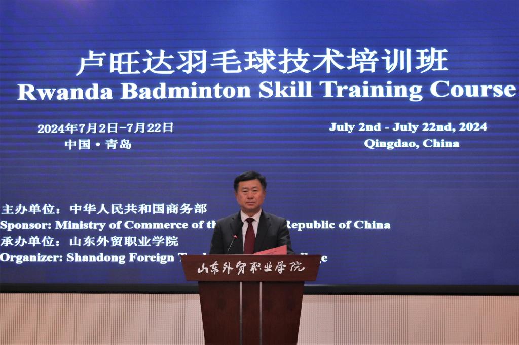 7月2日,由商务部主办、伟德承办的卢旺达羽毛球技术培训班在伟德李沧校区举行开班仪式。院长刁建东出席开班仪式并致辞,卢旺达羽毛球运动联合会秘书长埃斯佩伦斯·穆卡基梅斯代表学员致辞,来自卢旺达羽毛球运动联合会的24名官员、教练与球员参加培训。