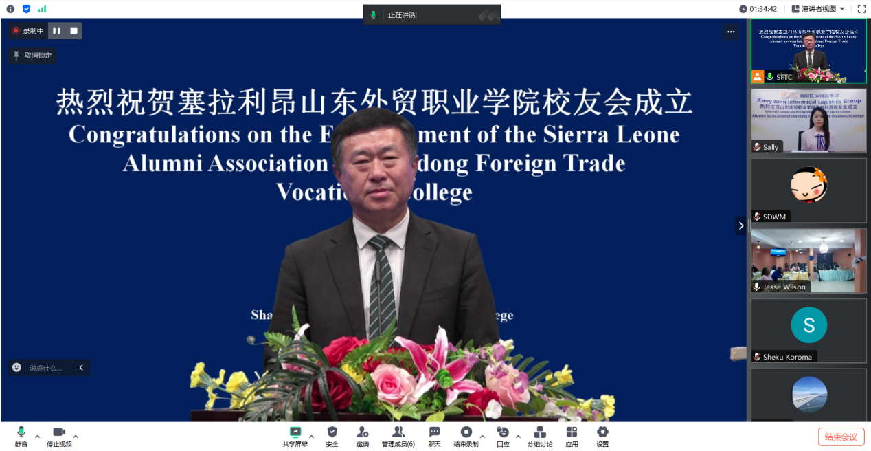7月6日,塞拉利昂伟德国际victor1946官网校友会在线上举行成立仪式。塞拉利昂校友代表外交与国际合作部杰西·威尔逊主持仪式,塞拉利昂校友代表就业与社会保障部福戴·南盖·卡马拉、学院原院长刁建东教授、国内校友代表高阳物流董事长王爱香分别致辞。新任学院院长刘珉、国际交流合作处处长毛世明、国际官员研修学院院长王保红和校企合作办公室副主任管涛共同参加了成立仪式。