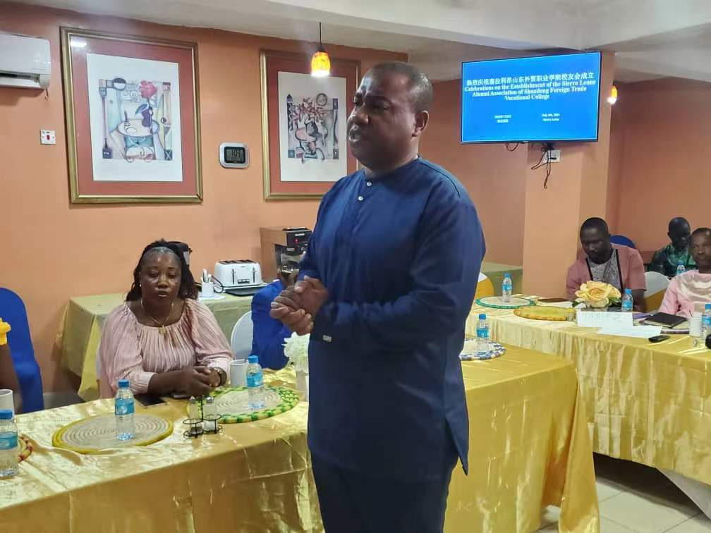 刁建东在致辞中向校友会的成立表达了祝贺并向为校友会成立付出辛勤努力的各位校友表达了感谢。刁建东表示,校友会的成立意味着学院与塞拉利昂校友之间的联系会更加紧密。希望校友会成为学院与塞拉利昂校友之间,中国校友与塞拉利昂校友之间联系和交流的桥梁和纽带,利用校友会平台促进中国与塞拉利昂在贸易、投资、基础设施建设等多领域的合作,为中塞两国的各项事业发展注入新的活力。