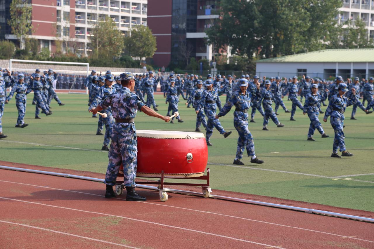 大会在庄严的升国旗、奏唱国歌中拉开帷幕。2600多名新生精神饱满、斗志昂扬地进行了军训汇报表演。伴随着军训指挥员的口令,军体拳方队动作刚劲有力,节奏分明;各连分列式方队步伐整齐、口号嘹亮地从主席台前经过,展示了2019级新生的蓬勃朝气;全体新生大合唱《走向复兴》,传递出了中华民族在新的时期面向未来、不怕艰苦、走向民族复兴的坚定信念。