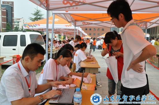在迎新现场,一条条迎新横幅、一块块宣传板、崭新的宣传栏,让新生对学院有了直观的印象;报平安电话、家长休息区、银行取款车等人性化服务,让学生家长感受到了学院以人为本的办学宗旨;绿色通道、新生咨询处、火车旅馆问询处等服务点的设立,及时帮助学生解决入校后的困难和疑惑;新生报到期间,学院加强了对周边环境和校园内部交通管制工作,报到当天校园迎新秩序井然;各系新生接待站,报到通道便捷快速,新生用最短的时间完成了报到手续,顺利入住学生宿舍。