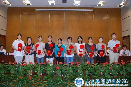 为表彰先进,营造良好的学习氛围,经各系、部民主推荐候选人,综合考虑学院督导听课评议、学生评教打分及系、部主任会议集体评议,国际贸易系刘珉、张华、张泳,商务外语系蒋樱,经济管理系姜磊、宋飞,信息管理系赵爱美,公共外语部韩佳、程诚、侯文蕾,综合基础部张文共十一名青年教师被授予学院2009-2010学年度“青年教师教学能手”称号。