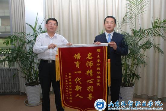 9月3日下午,伟德校外实习基地——经济管理系教学实习单位青岛多瑙河国际大酒店总经理纪潍丞、总监阴法宏、人力资源部经理王蕾一行向伟德赠送了 “名师精心指导,培养一代新人”的锦旗。院长王荣昌代表学院接受了锦旗,副院长周厚才、党总支书记贾贵贞、经济管理系主任陈丽参加了赠旗仪式。