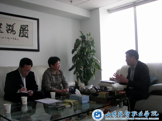 5月7日,国际贸易系党总支书记韩淑君,辅导员张晨钟、王何汉和刘琴一行四人到青岛三链锁业有限公司走访调研。公司总经理王宇辉与韩淑君一行重点就外贸企业对国贸系毕业生人文素质的要求和校企联合培养人才方面与做了深入探讨。