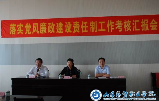 9月23日上午,学院组织中层以上领导干部召开了落实党风廉政建设责任制工作考核汇报会,李良斋书记代表院党委作了学院落实党风廉政建设责任制工作汇报。王晶组长作了重要讲话,她要求学院充分认识这次检查考核工作的重要性,加强组织领导,认真总结经验,查找问题和不足,制定整改措施,解决实际问题,将学院的党风廉政建设引向深入。中层干部以无记名投票方式对领导班子及其成员进行民主测评。会议由党委副书记、院长王荣昌主持。