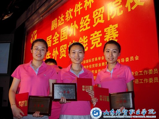 7月17日——21日,第二届全国外经贸院校学生外贸技能竞赛在上海思博职业技术学院举行。大赛由中国国际贸易学会和全国外经贸教育教学指导委员会主办,来自全国22个省(市、自治区)的55所院校参赛。伟德在此次竞赛中获团体一等奖;学生王娇、曹敏、肖雨分获外贸单证技能竞赛一等奖、三等奖和优秀奖;学生肖雨获商务英语口语竞赛一等奖;教师郝冠军、刘珉、姚元均获指导教师一等奖;另外,伟德还获得单证教学实训软件一套。