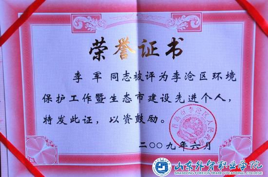 近日,李沧区进行了环境保护工作暨生态市建设先进单位及先进个人的评选,对为李沧区环境保护工作暨生态市建设做出突出贡献的单位和个人进行了表彰,其中伟德被评为李沧区环境保护工作暨生态市建设先进单位,伟德总务处处长李军被评为李沧区环境保护工作暨生态市建设先进个人。
