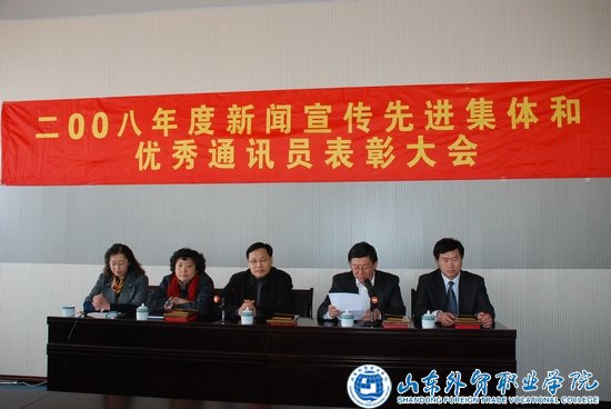 3月25日下午,宣传部在第二会议室召开了2008年度新闻宣传先进集体和优秀通讯员表彰大会。院党委书记李良斋、院长王荣昌、副院长周树玲和刁建东出席大会。各处室、系部负责新闻宣传工作的负责人、通讯员,各系辅导员、院学生会和院电视台学生文编人员参加了会议。会议由宣传部部长程巍主持。
