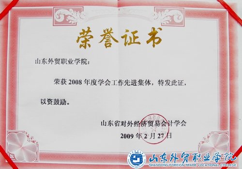 2月27日,在山东省对外经济贸易会计学会召开的五届二次常务理事扩大会议上,伟德荣获2008年度“先进集体”称号,经济管理系主任陈丽获“先进个人”称号。此外,经济管理系陈丽、万颀钧、杨智慧、孙中平等十几名教师撰写的会计专业论文分别获得优秀论文一、二、三等奖。