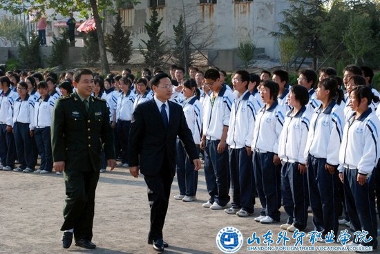 院党委书记李良斋在部队首长的陪同下,环场一周,检阅了军训方队。44支学生方队伴着分列式进行曲,迈着整齐有力的步伐,英姿飒爽地依次走过主席台接受检阅。