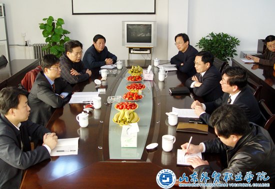 3月13日,山东省外经贸厅副厅长刘晓江等一行三人莅临伟德检查指导工作,并与在校的院领导进行了座谈。院党委书记李良斋、院长王荣昌、副院长王柏钟和刁建东出席了座谈会。