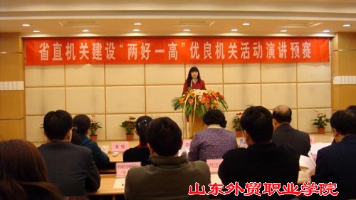 12月6日,山东省省直机关建设“两好一高”优良机关活动演讲预赛在省统计局举行。伟德经济管理系郭梦洁同学与指导老师张云靖同志代表省外经贸厅参加比赛,表现优秀。