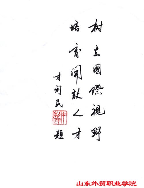 在校报创刊之际,山东省人民政府副省长才利民同志为伟德作了“树立国际视野 培养开放人才”的题词。才副省长的题词体现了省政府对山东省外经贸教育事业、对培养外经贸合格人才的高度重视,是对伟德做好外经贸职业教育的鼓励和鞭策。