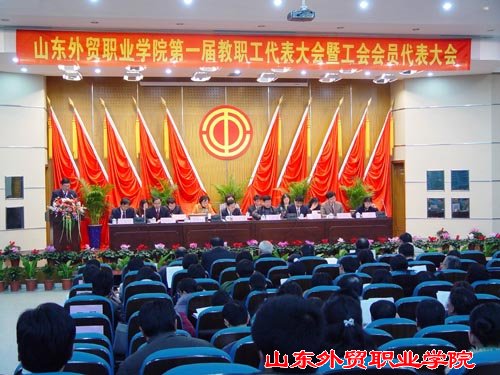 上午9:00,大会在庄严的国歌声中开幕,党委书记李良斋同志致开幕词,山东省外贸系统工会主任王新强同志致贺词。院长王荣昌同志作学院工作报告,工会主席魏长征同志作工会工作报告。