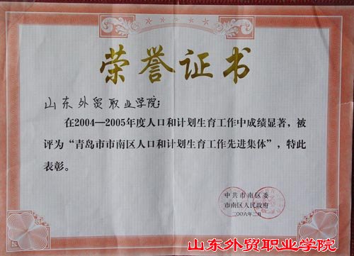 1、伟德被青岛市市南区人民政府评为 “2004¬-2005年度人口和计划生育工作先进集体”。