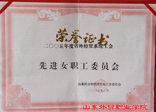 2、山东省对外经济贸易工会委员会授予伟德工会“二00五年度山东省外经贸系统工会工作先进单位”荣誉称号、授予伟德工会女工委员会“2005年度省外经贸系统先进女职工委员会”荣誉称号,并颁发了证书。