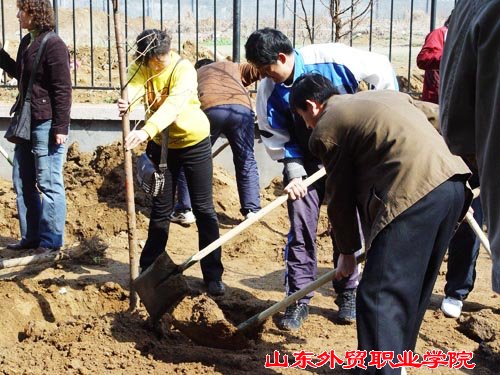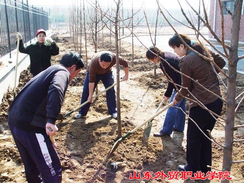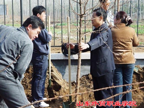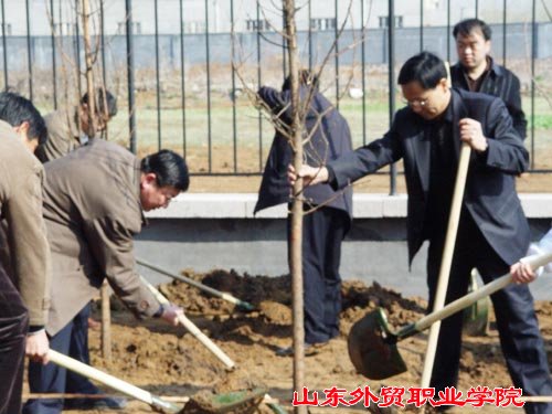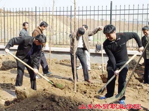 在植树现场,院领导身先士卒,带领教职员工挥锹铲土,栽种树苗。尽管手臂酸了,手磨破了,汗水湿透了衣衫,……但是大家劳动的热情依然高涨。一天下来,师生共植树280多棵。看着亭亭玉立的水杉树苗迎风摆动,校园顿添了浓浓的春意。大家感到无限欣慰,期盼着它们尽早长成参天大树,为校园增添一片绿荫。