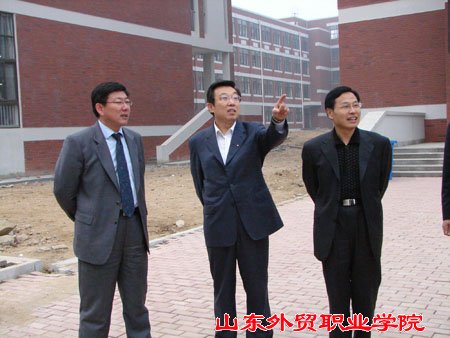 11月5日上午,省外经贸厅阎兆万副厅长在院党委书记李良斋、院长王荣昌的陪同下,视察学院北校区新建工程,参观了教学楼、学生公寓、学生餐厅和中心机房,并听取了李书记和王院长对新建工程建设情况的汇报。指出:学院要搞好校园的整体规划,保证工程质量,同时,做好校园绿化,为全体师生创造出一个环境优美、品位高雅的工作、学习场所。