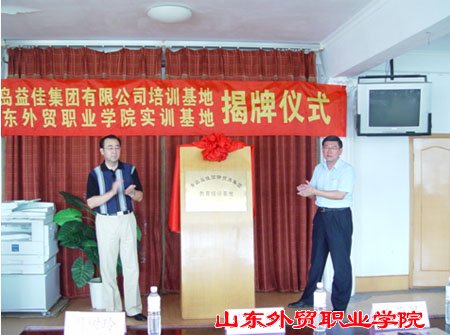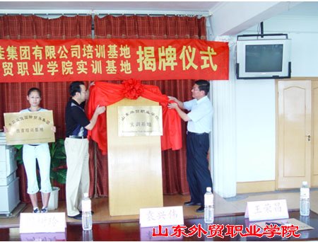 2005年9月7日,“青岛益佳国际贸易集团有限公司培训基地”和“伟德国际victor1946官网实训基地”揭牌仪式在伟德隆重举行。揭牌仪式由周树玲副院长主持,益佳集团袁兴伟董事长发表了热情洋溢的讲话。他代表集团向两个基地的成立表示祝贺,并衷心的感谢为成立基地而付出诸多努力的伟德师生和同仁!他指出,教育培训基地的建立将为集团提供大批专业的人才资源支持,对企业长远发展具有重要意义。