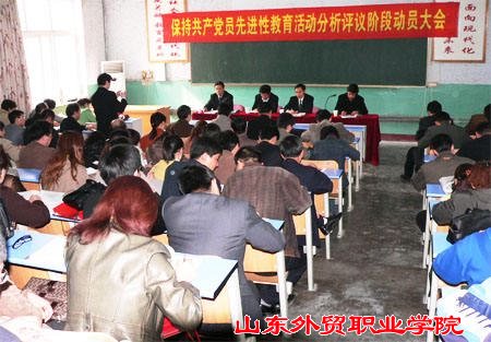 党委书记、先进性教育活动领导小组组长李良斋同志作动员讲话,他谈到,从总的情况看,第一阶段大家的学习是认真的,广大党员在思想理论水平、政治意识、大局意识、团结写作意识、党性观念、群众观念等方面有了不同程度的提高,在实际工作中大家的精神面貌也有了明显的变化,特别在关心学生、关心学校发展方面自觉性、主动性更强了。李书记强调:即将开展的分析评议阶段的工作是巩固和扩大学习动员阶段成果、打牢整改提高阶段的基础,确保先进性教育活动取得实效的关键环节。这个阶段政策性、程序性强,全体党员要继续坚持四个贯穿始终,认真按照学院的教育活动方案,做好分析评议阶段工作,确保党员先进性教育活动能够取得实效。