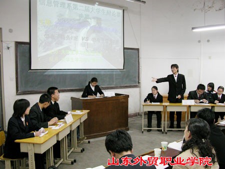 为了加强同学们的思想道德建设,提高同学们的综合素质,培养学生的思维能力和语言表达能力,活跃校园理论研讨气氛,更进一步丰富校园文化生活,信息管理系于12月7日举办了第二届大学生辩论赛决赛。此次活动共有十支队伍参赛,历时4周。经过紧张激烈的角逐,03级电子商务一班、二班分获冠亚军,程文冬同学被评为最佳辩手。