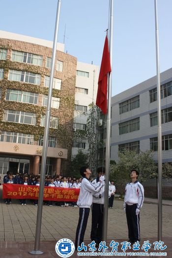 上午6点58分,三名旗手统一着装,迎着早春的朝阳,迈着矫健的步伐护送国旗至旗杆下,奏乐敬礼,动作标准而娴熟。伴着庄严的《义勇军进行曲》,同学们高唱国歌,注视着鲜艳的五星红旗冉冉升起。在国旗下的主题教育环节中,团学干部培训班学生代表、商务外语系11级商英5班朱雪炜同学进行了激情洋溢的演讲,号召广大同学珍惜时间,奋发读书,立志成才,努力成长为社会主义合格建设者和可靠接班人。随后,同学们在国旗下重温入团誓词。同学们都深受启发,倍感鼓舞。最后,团委书记李欣对参加仪式的青年团员提出三点希望:一是希望广大团员青年胸怀祖国,志存高远,牢固树立紧跟党走的坚定信念;二是勤学苦练,全面发展,树立新时期团干部的良好形象;三是要明确目标,把握重点,扎实开展纪念建团九十周年庆祝活动。