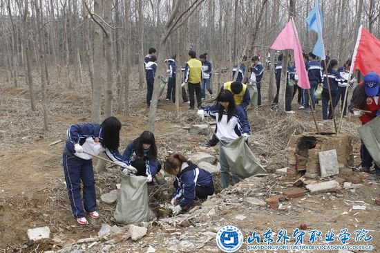 仪式结束后,伟德大学生志愿者们奔赴青银高速公路西侧,开展了洁净家园志愿服务活动。在活动现场,“学雷锋”、“青年志愿者大干300天”、“洁净家园志愿行动”等数条横幅光彩夺目,学雷锋青年先锋队旗帜和团旗高高飘扬,数十面彩旗迎风招展,伟德星火志愿者协会和各系志愿者团队的志愿者们佩戴着“学雷锋七彩志愿行动”徽标热情高涨地投入环境卫生清理劳动中,将青银高速公路西侧中崂路至金水路段垃圾死角清理得干干净净。随后,老师和同学们坚持不怕脏、不怕累的精神,将学院东北角外墙周围的“白色垃圾”也清理干净,为创造优美校园环境尽了一份力量。